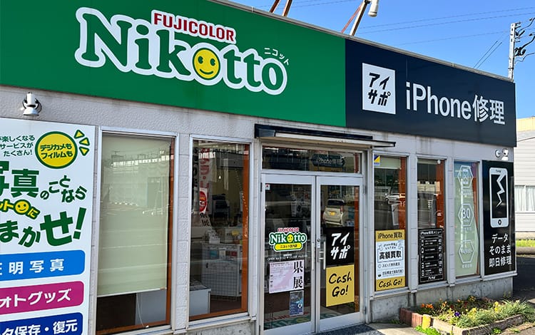 当店では、iPhone・iPad買取だけではなく、「アイサポ」でiPhone修理、「フジカラーニコット」で様々な写真に関するサービスを行っております。